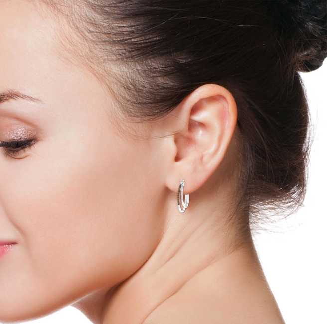Sotiya Coffee Studded Double Hoop Earrings Sterling Silver