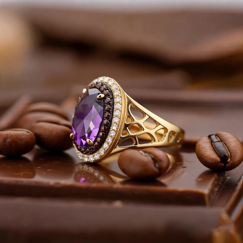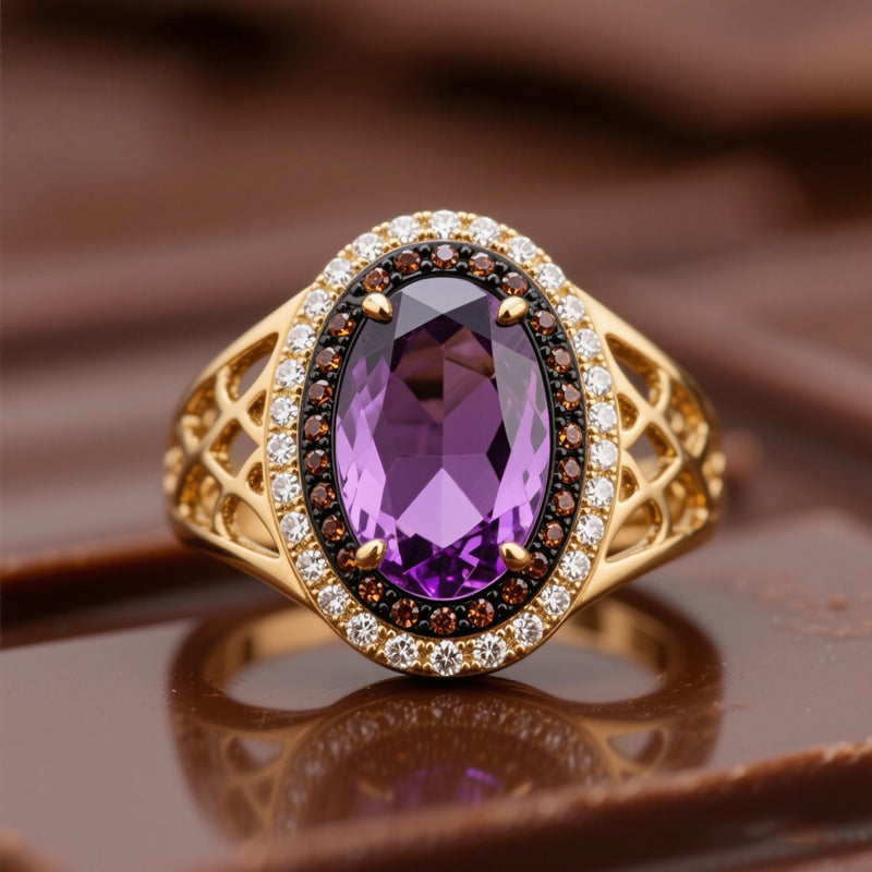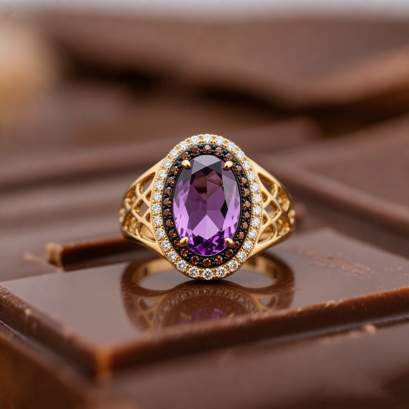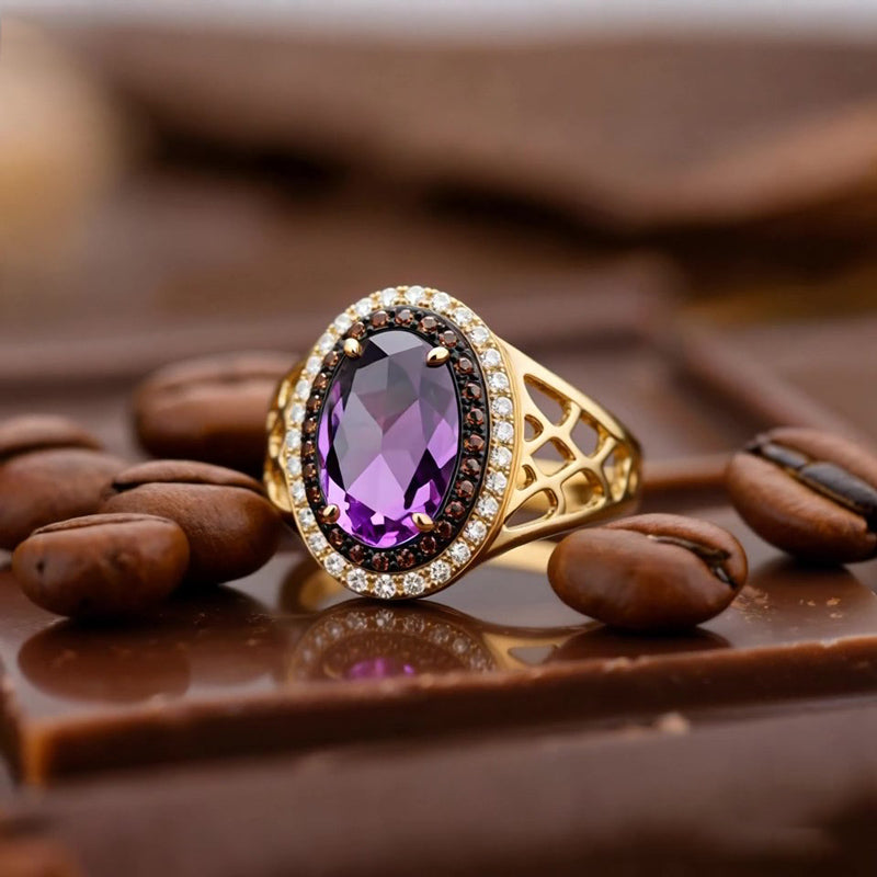 Sotiya Double Halo Oval Cut Coffee Engagement Ring Sterling Silver
