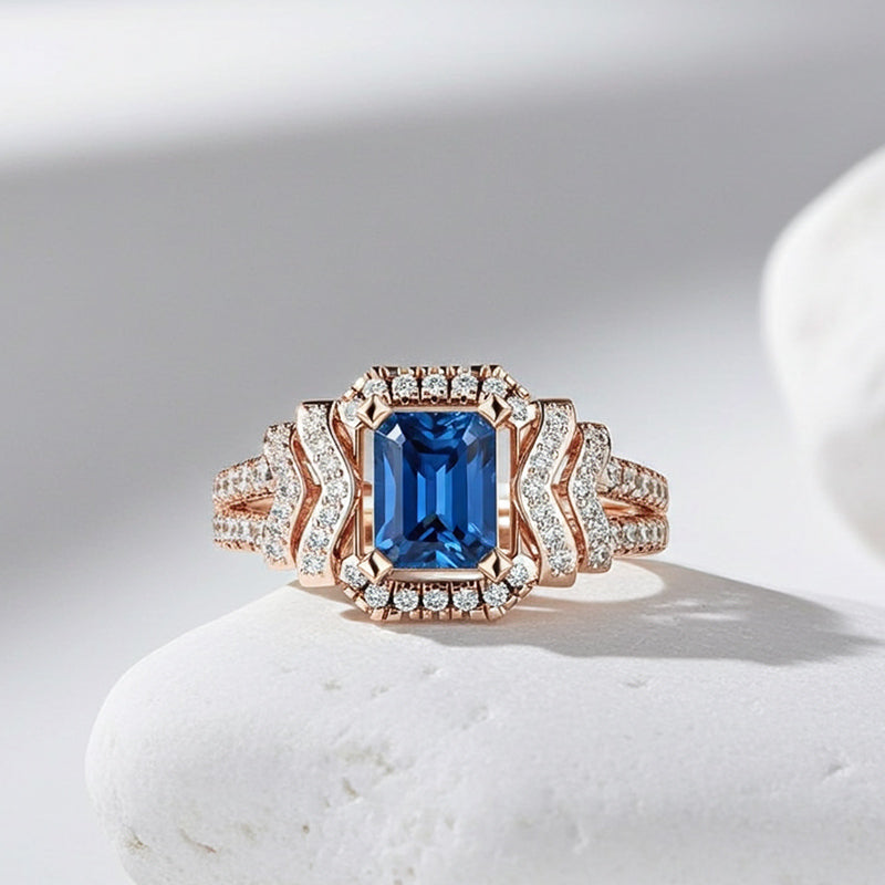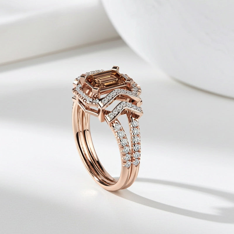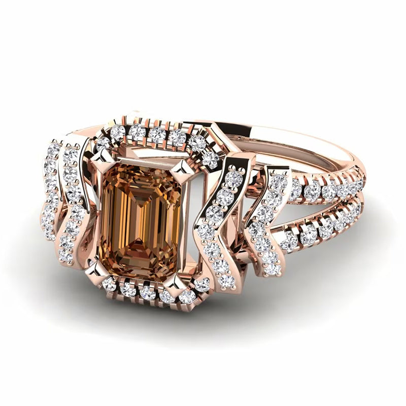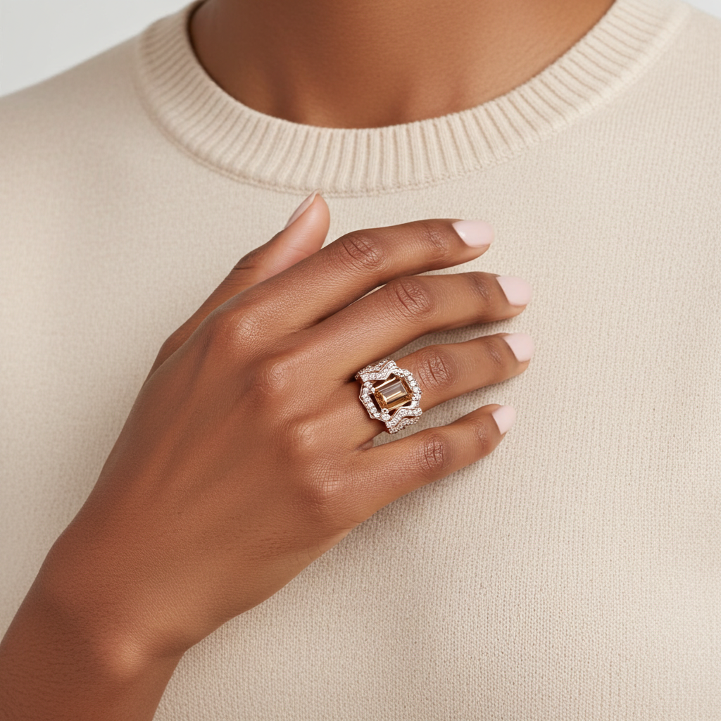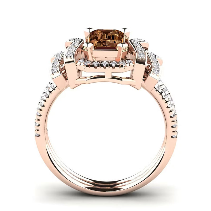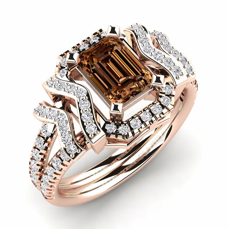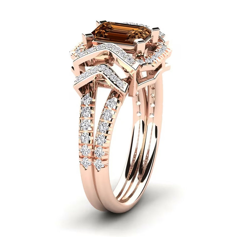 Sotiya Vintage Emerald Cut Coffee Engagement Ring Sterling Silver