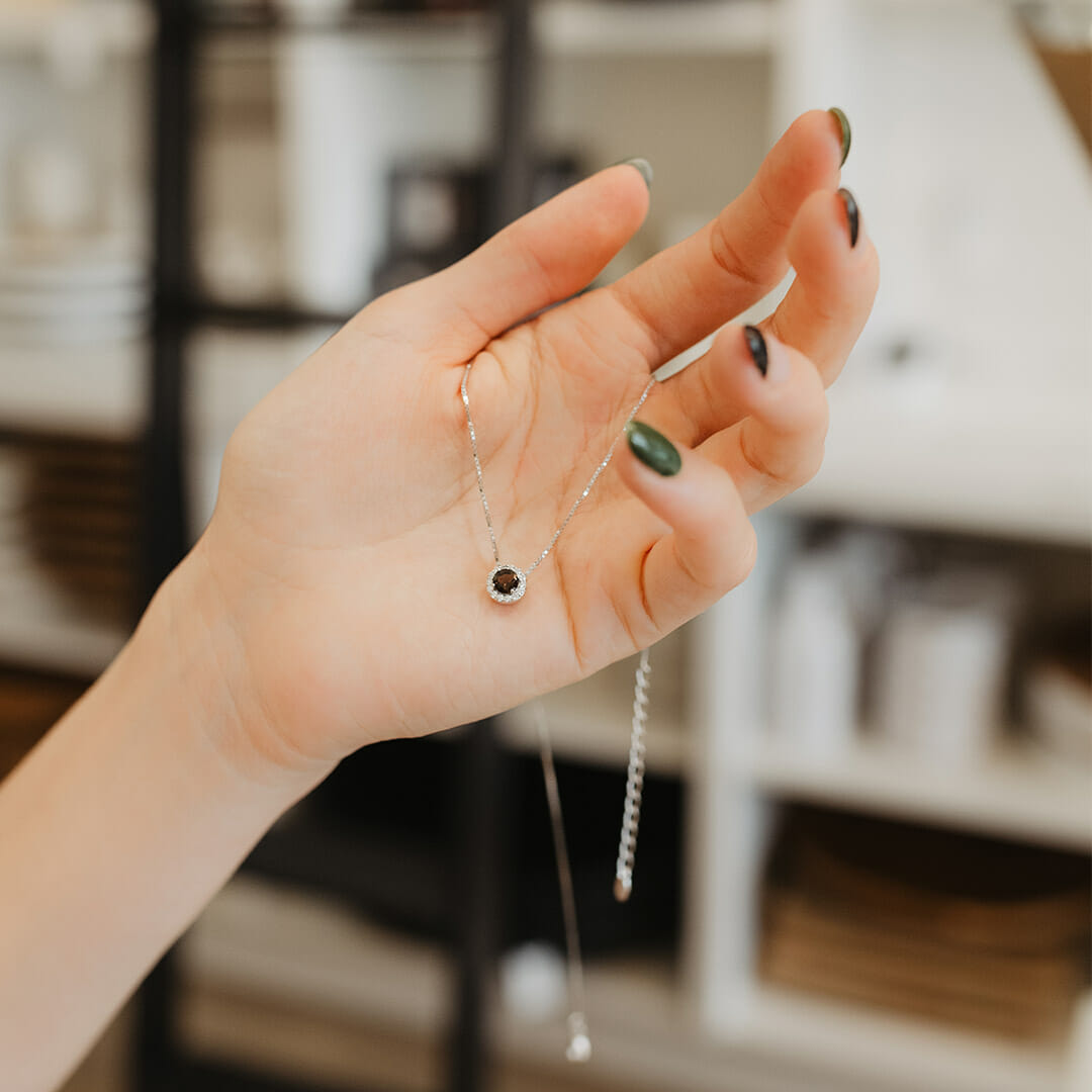 Sotiya Halo Coffee Round Cut Necklace Sterling Silver