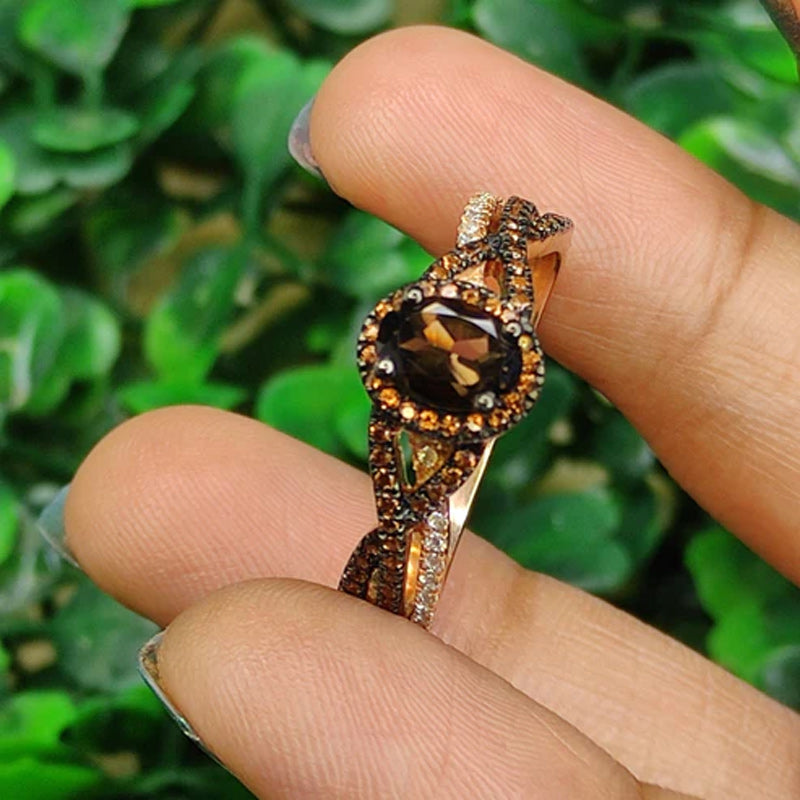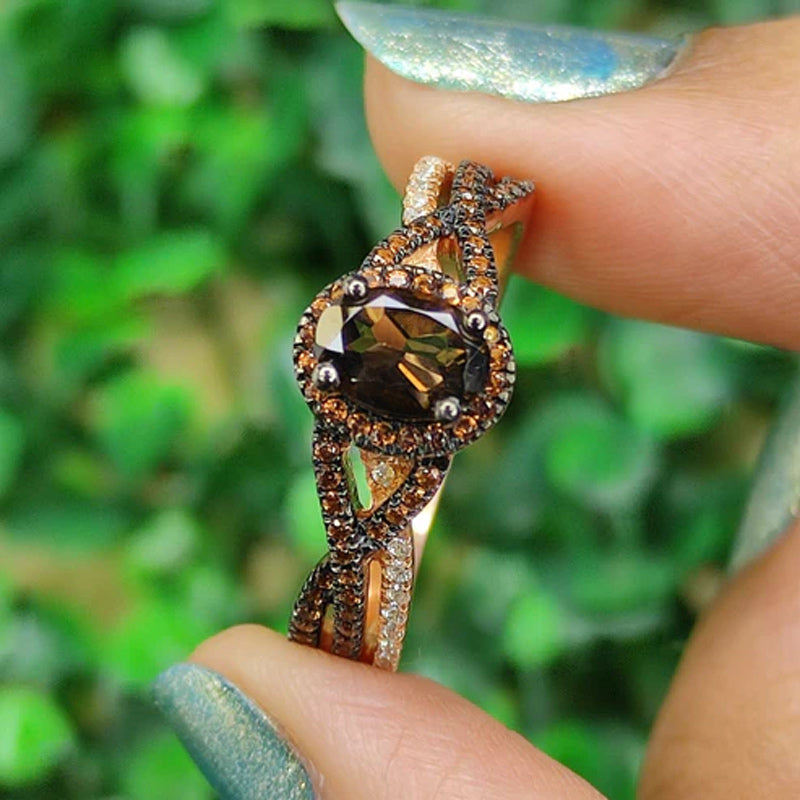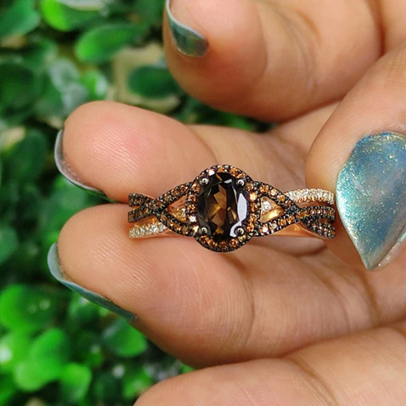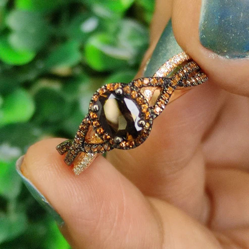 Sotiya Halo Oval Cut Coffee Twist Shank Engagement Ring Sterling Silver