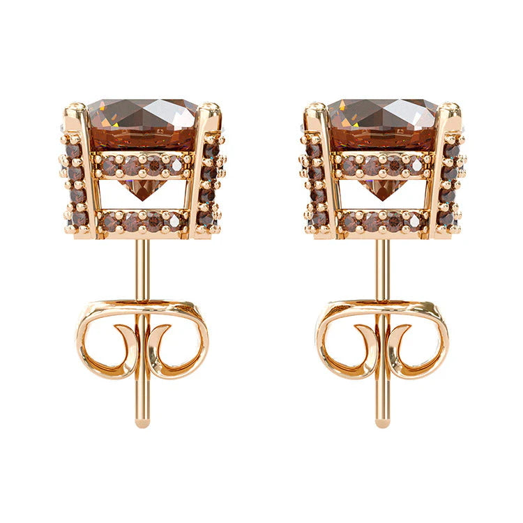 Sotiya Hidden Halo Round Cut Coffee Stud Earrings Sterling Silver