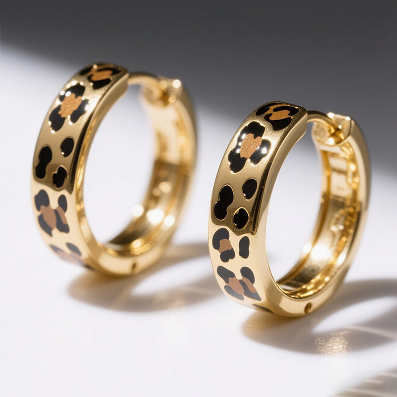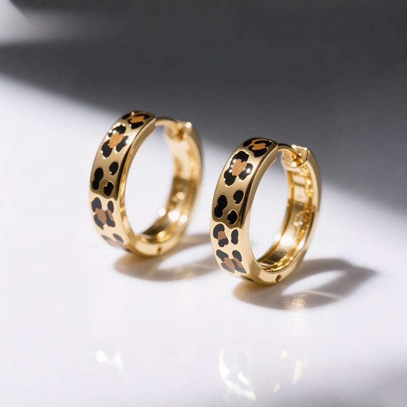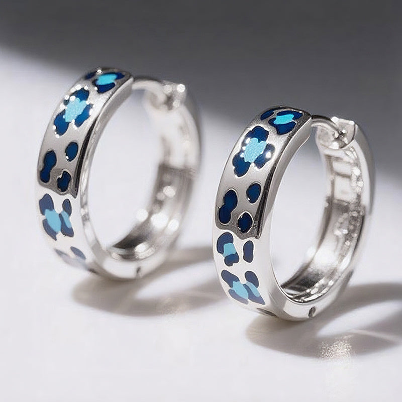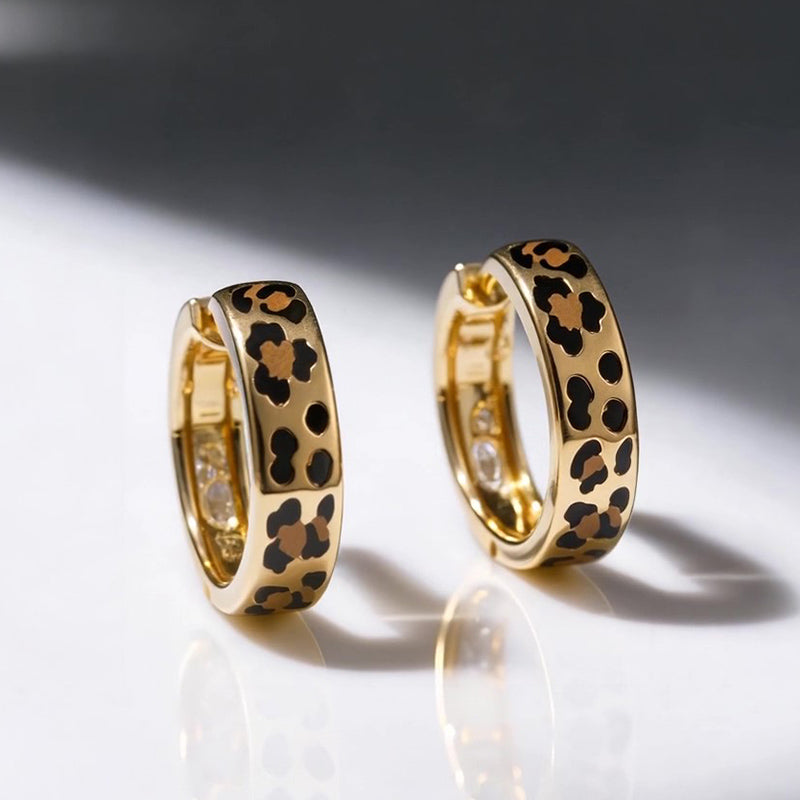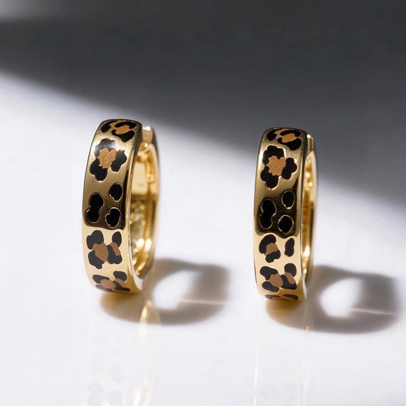 Sotiya Leopard Print Coffee Enamel Hoop Earrings Sterling Silver