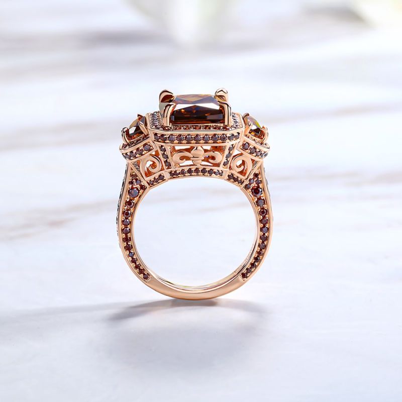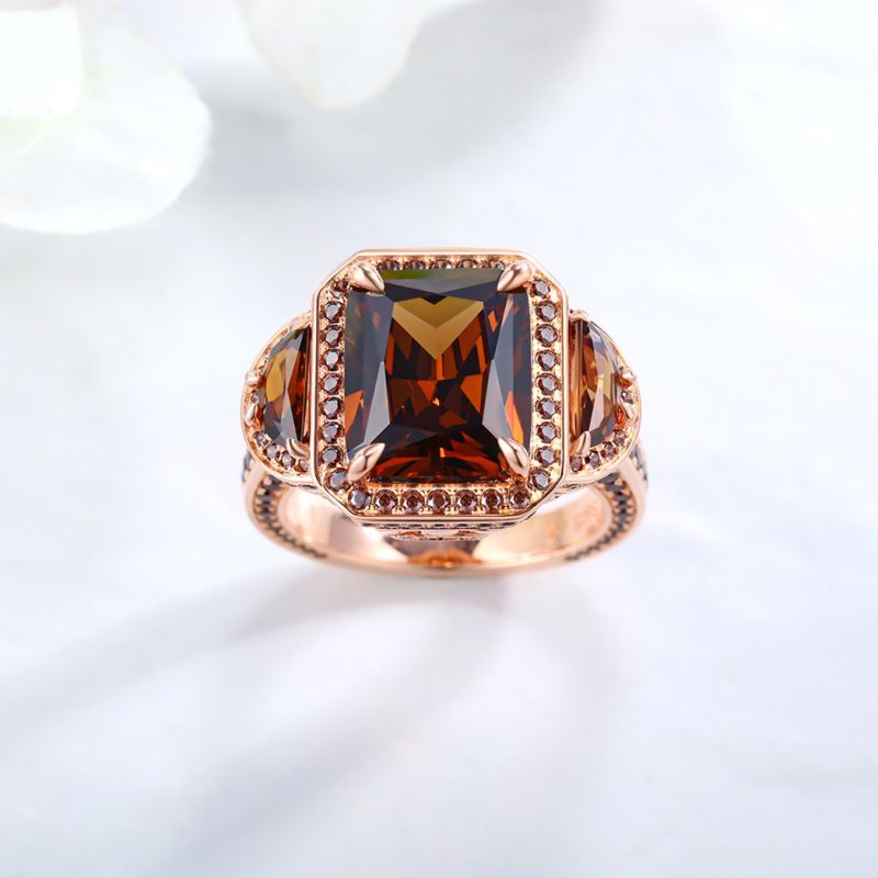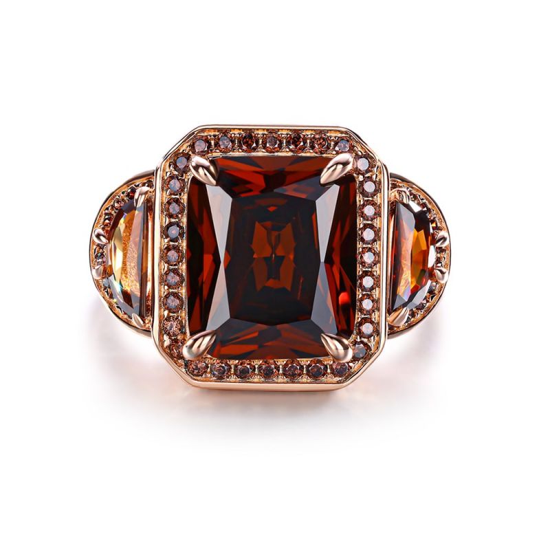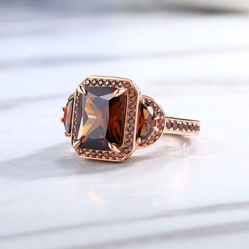 Sotiya Three Stone Halo Radiant Cut Coffee Engagement Ring Sterling Silver