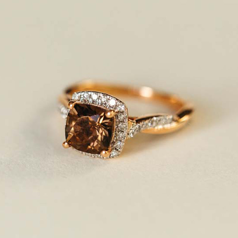Sotiya Twist Shank Halo Coffee Cushion Cut Engagement Ring Sterling Silver