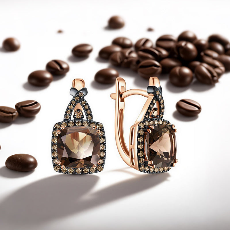 Sotiya Two Tone Halo Cushion Cut Coffee Hoop Earrings Sterling Silver