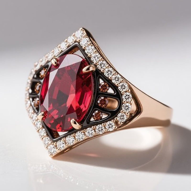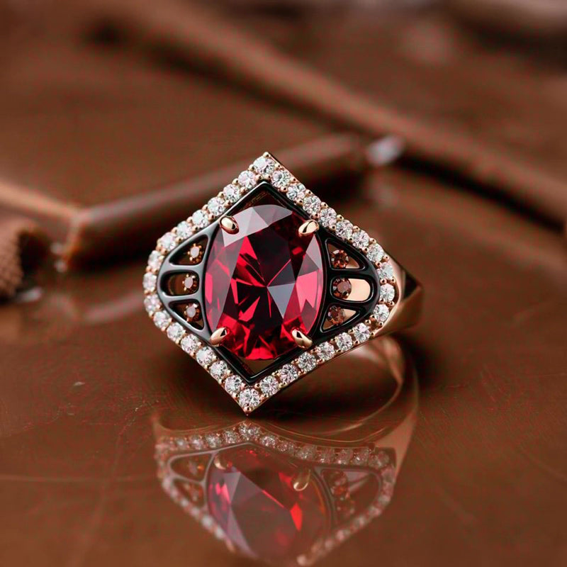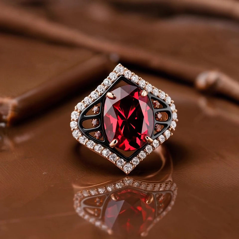 Sotiya Two Tone Unique Halo Oval Cut Coffee Engagement Ring Sterling Silver